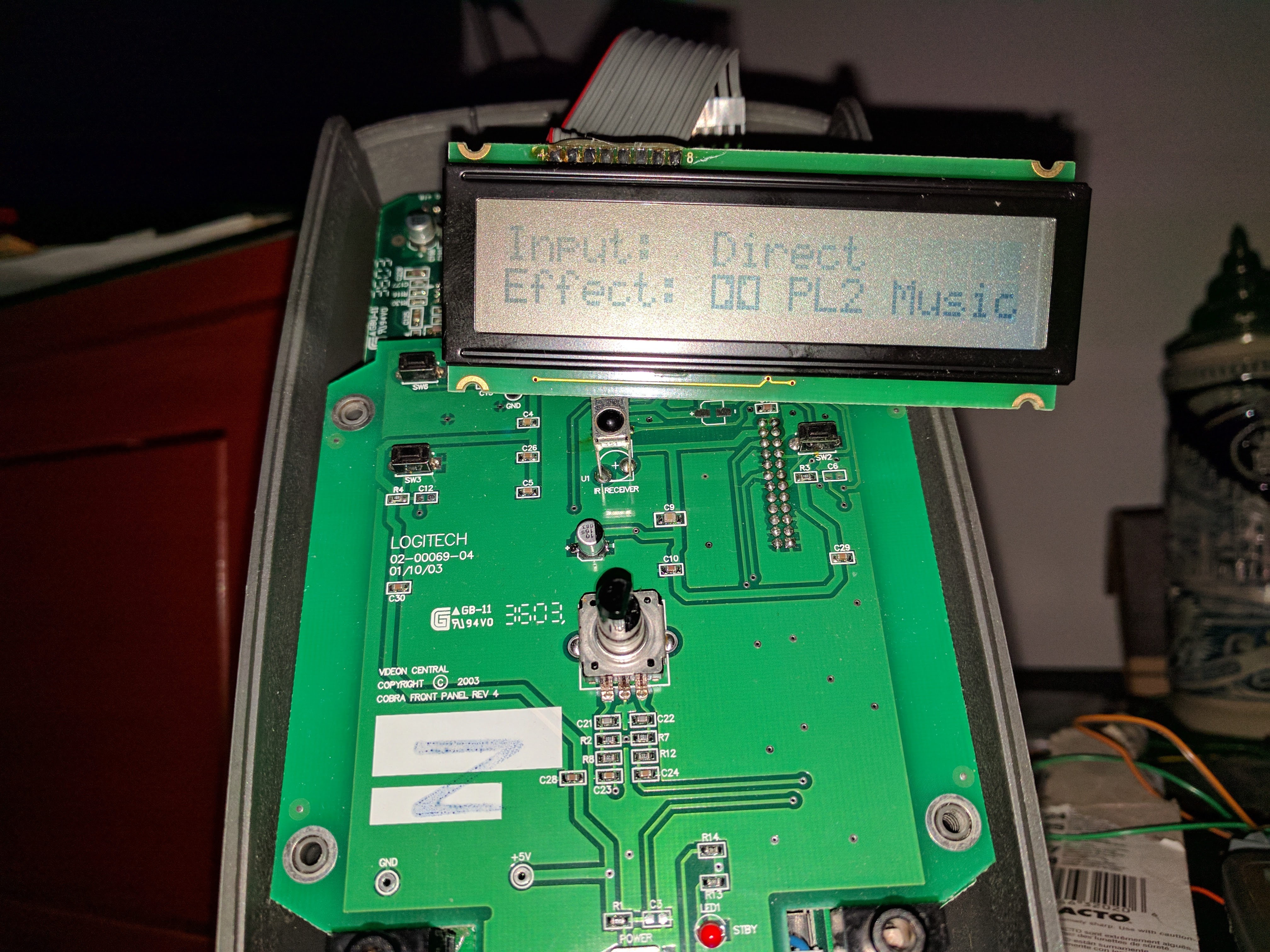 The major issue is the LCD on the control pod. There is no contrast adjustment, and the LCD has been fading with age. The blue backlight looked cool when it was new, but it has dimmed and started to flicker. This leads to some particularly ugly results, and makes it much harder to use the speakers. These photos underrepresent the severity of this problem.