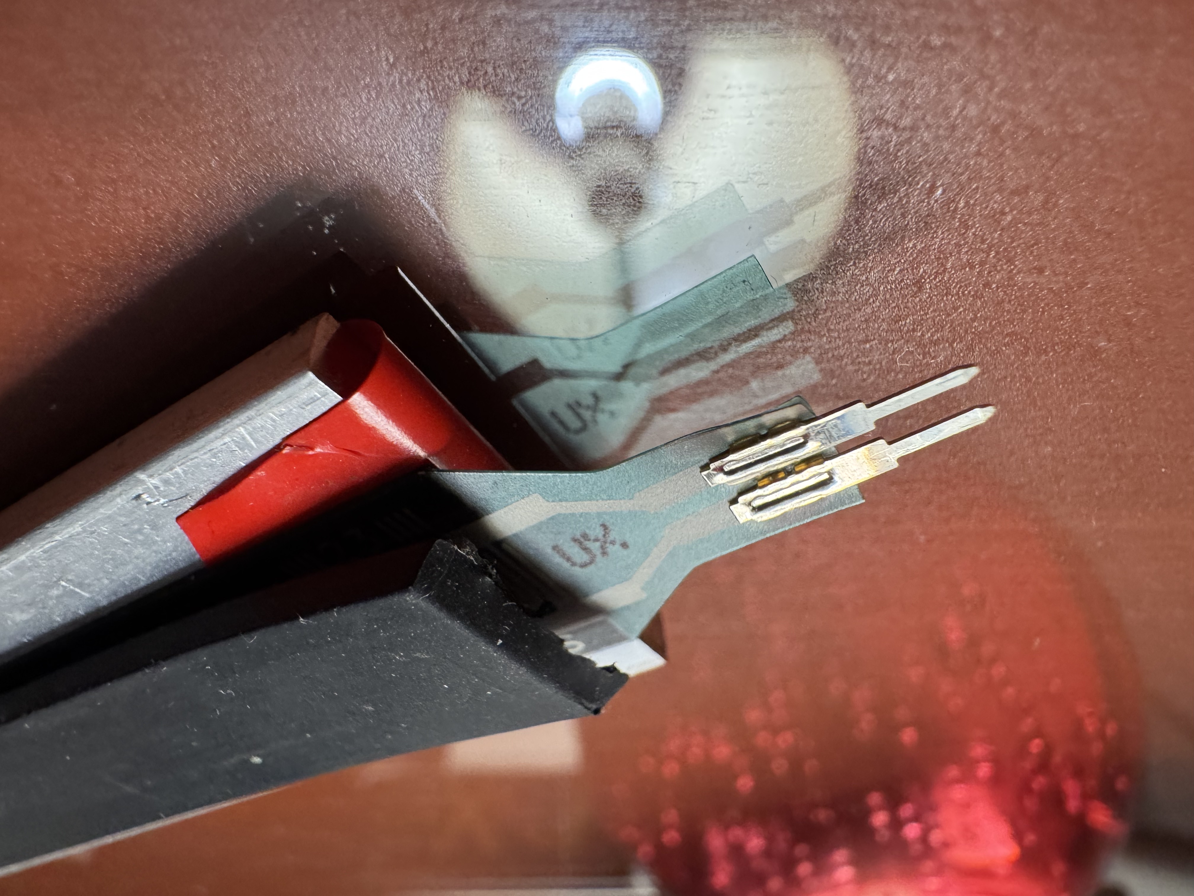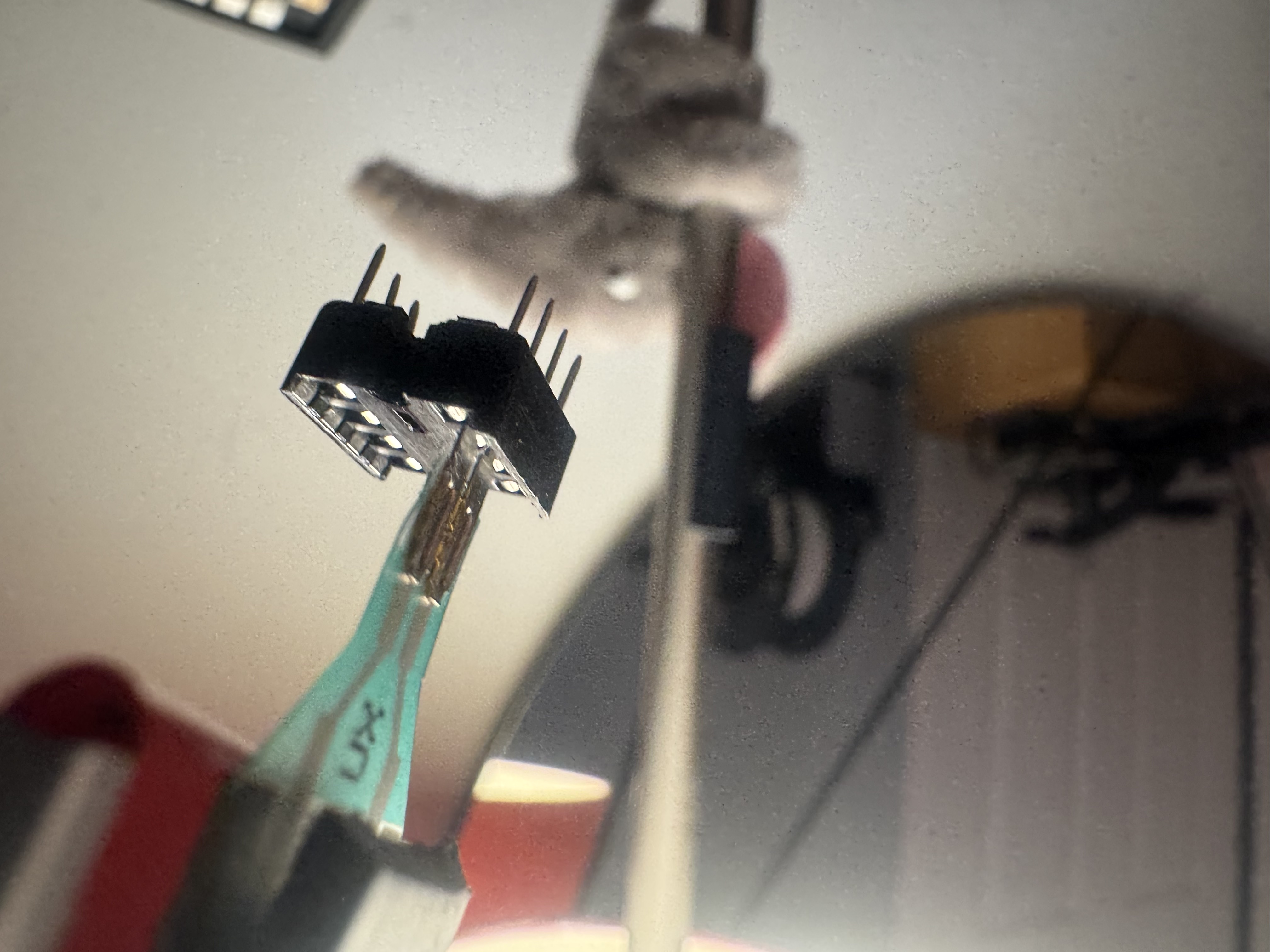 It originally seems like they soldered the wires directly to the FSR pins, and covered the whole thing in hot glue. Instead, I found that a double wipe 0.1” (2.54mm) IC socket fits the pins from this strip perfectly. I soldered my own wires to the pins on the socket, plugged the sensor pins into the socket, and then covered the whole thing in tape. Ultimately the tape didn’t hold, and to make it a lasting repair I still covered the whole thing in hot glue. It’s been working great since.